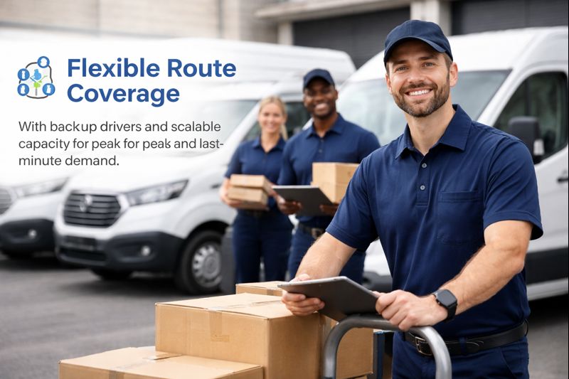 Flexible route coverage with backup drivers and scalable capacity for peak days and last-minute demand.